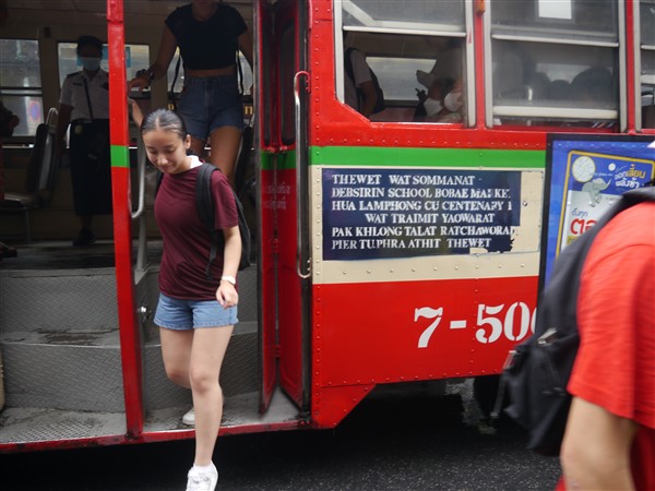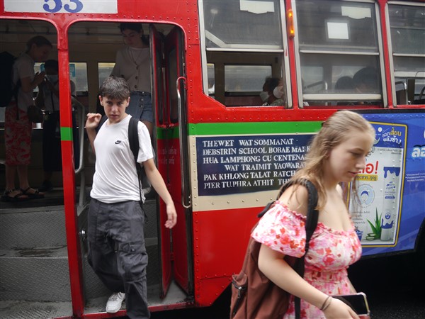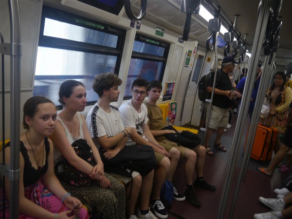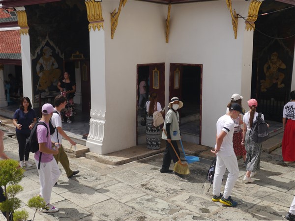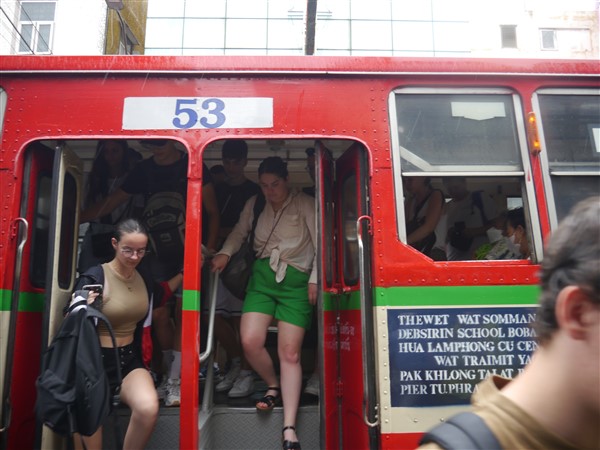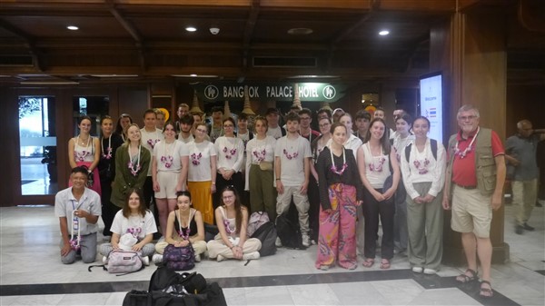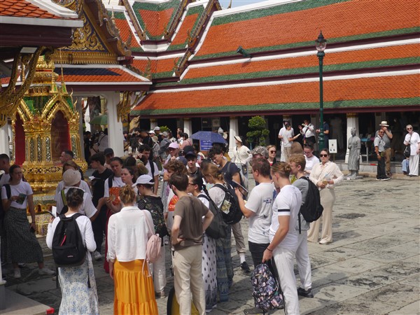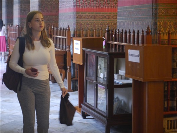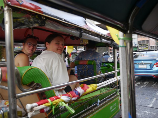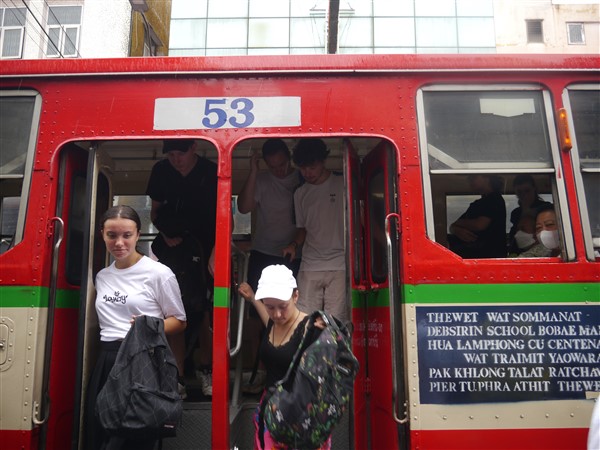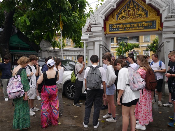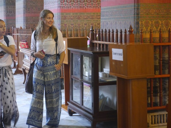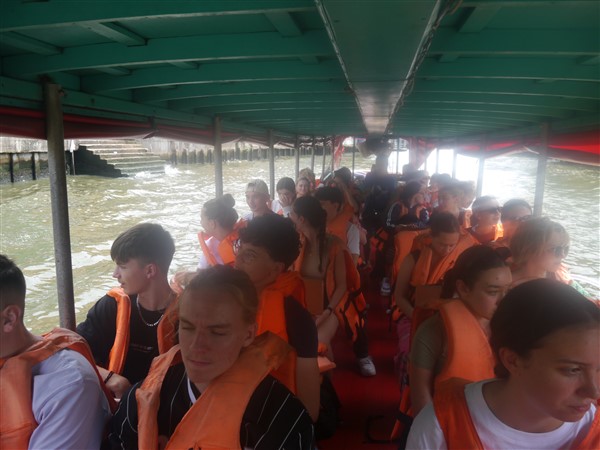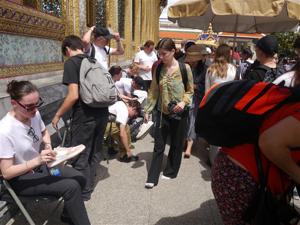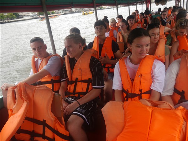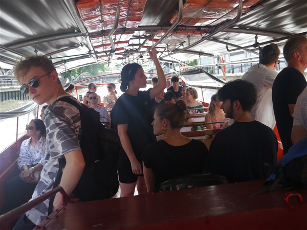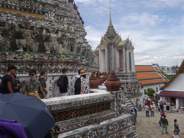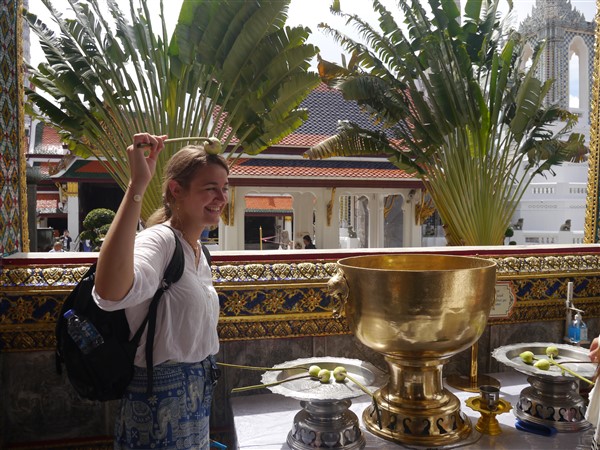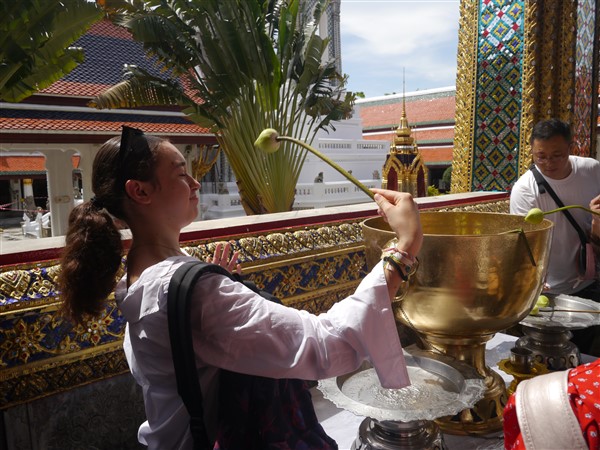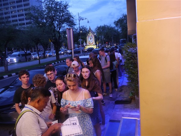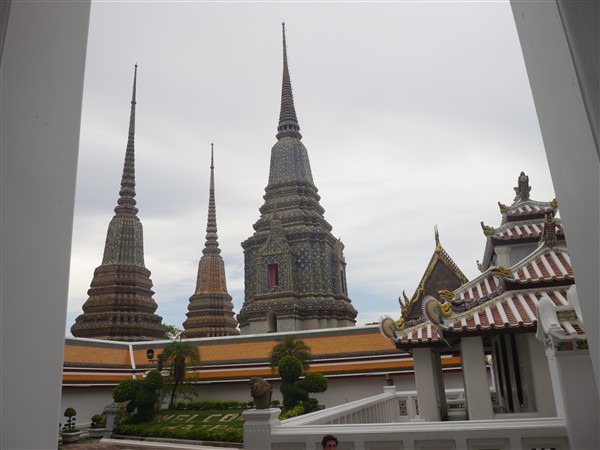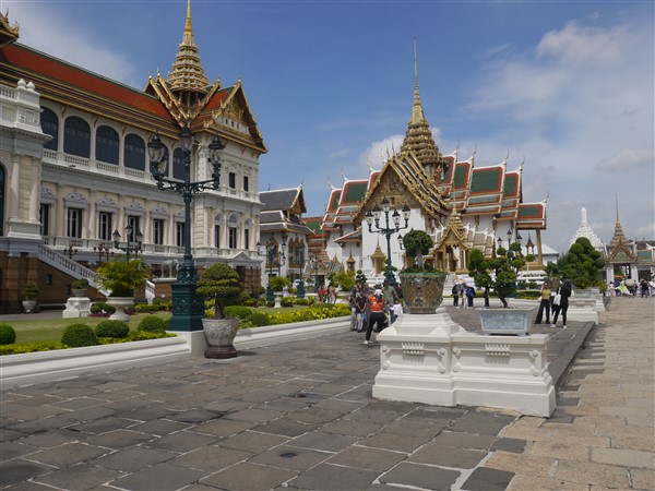 Aujourd’hui nous nous sommes levés très tôt le matin, nous sommes allés prendre le petit déjeuner dans l’hôtel pour ensuite aller visités le Wat Po où il y avait le Bouddha couché, il fait 43m de long et 15m de haut, pour le visiter nous devions retirer nos chaussures. Ensuite nous avons pris le bus pour se rendre au Palais Royale où réside le roi Rama 10 et toute sa famille, nous avons vu le Bouddha d’émeraude qui est une véritable fraude car il est de Jade. Nous avons visités pleins de temples dans l’enceinte du Palais et ensuite Pape nous as emmenés dans un restaurant où nous avons pu déguster des plats traditionnelles Thaïllandais.