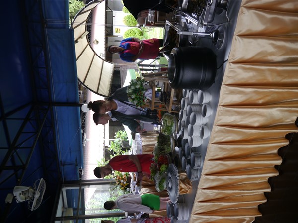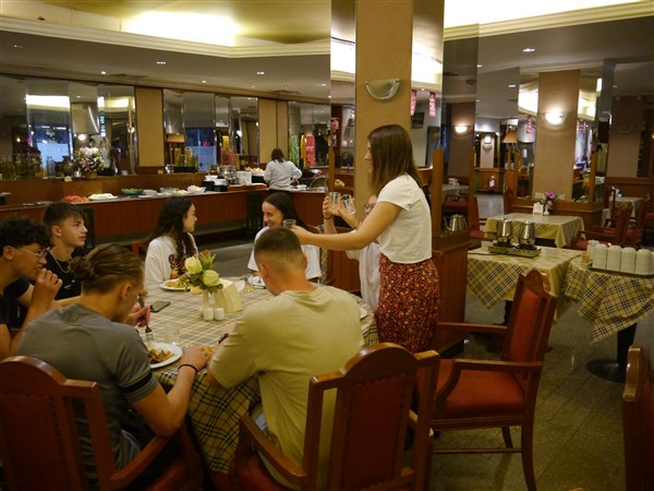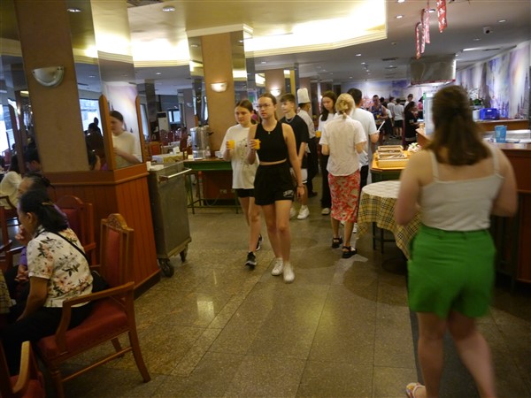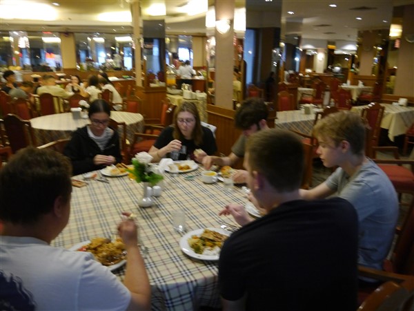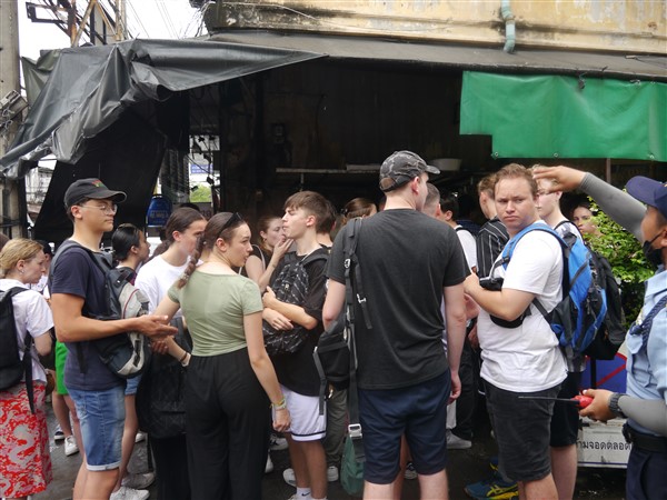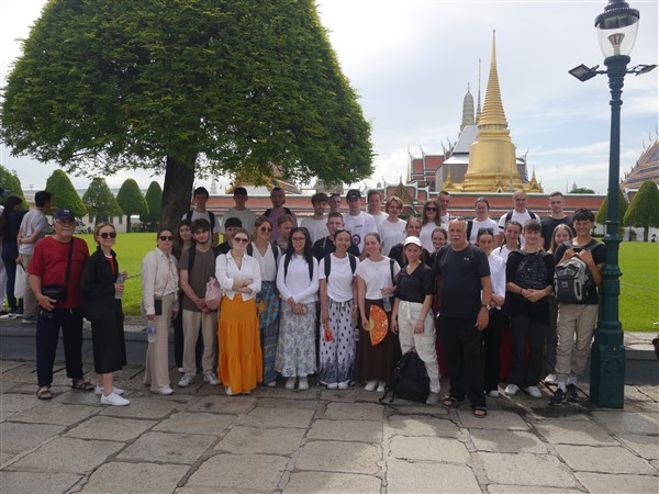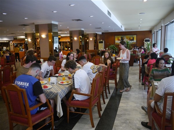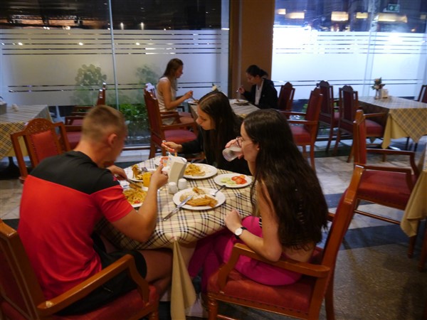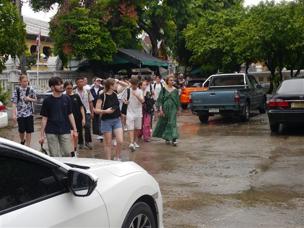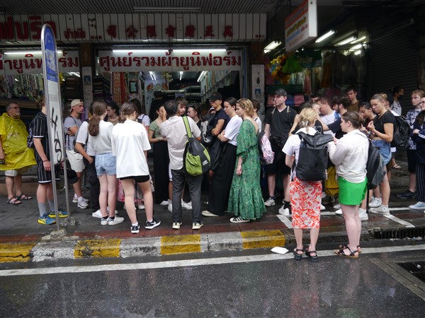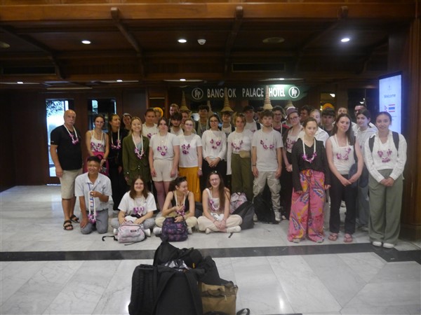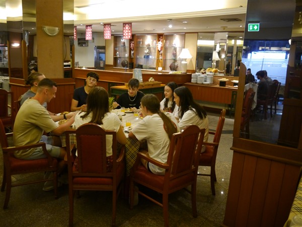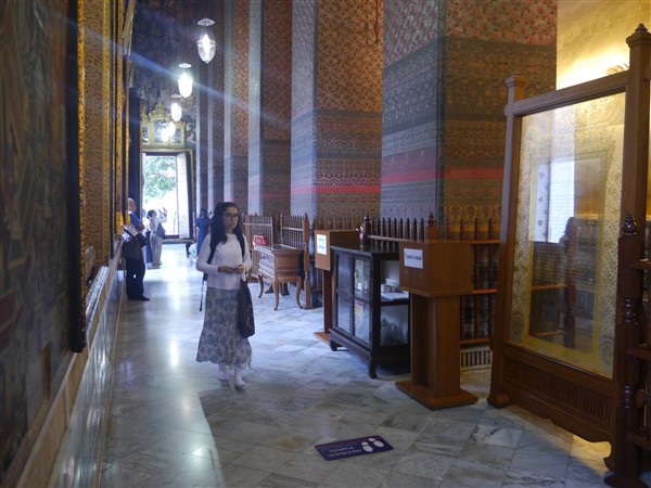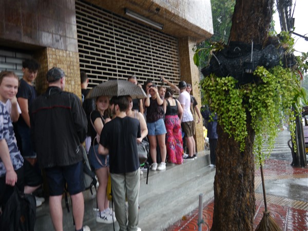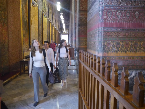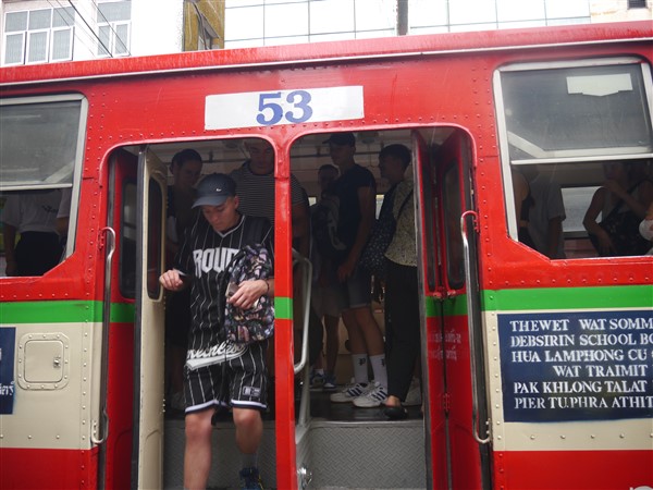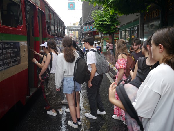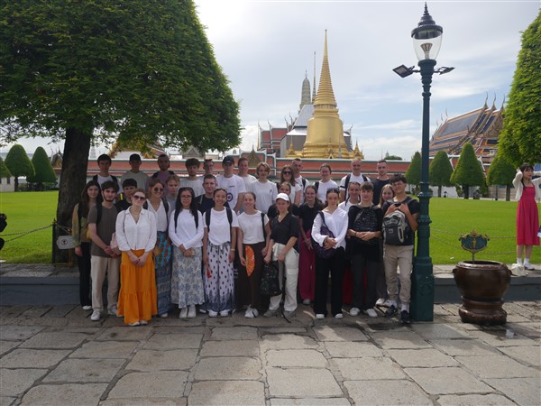 jourd’hui nous nous sommes levés très tôt le matin, nous sommes allés prendre le petit déjeuner dans l’hôtel pour ensuite aller visités le Wat Po où il y avait le Bouddha couché, il fait 43m de long et 15m de haut, pour le visiter nous devions retirer nos chaussures. Ensuite nous avons pris le bus pour se rendre au Palais Royale où réside le roi Rama 10 et toute sa famille, nous avons vu le Bouddha d’émeraude qui est une véritable fraude car il est de Jade. Nous avons visités pleins de temples dans l’enceinte du Palais et ensuite Pape nous as emmenés dans un restaurant où nous avons pu déguster des plats traditionnelles Thaïllandais.