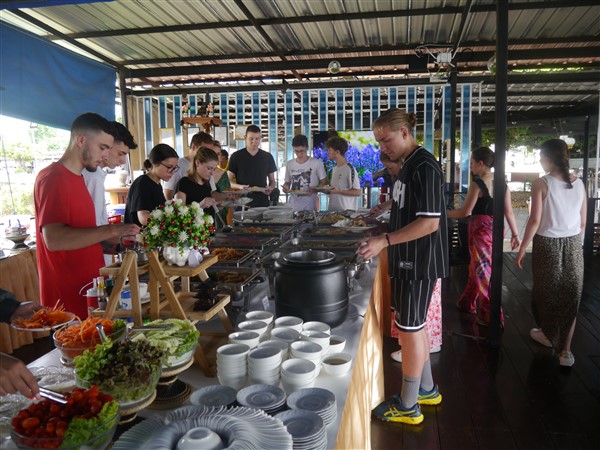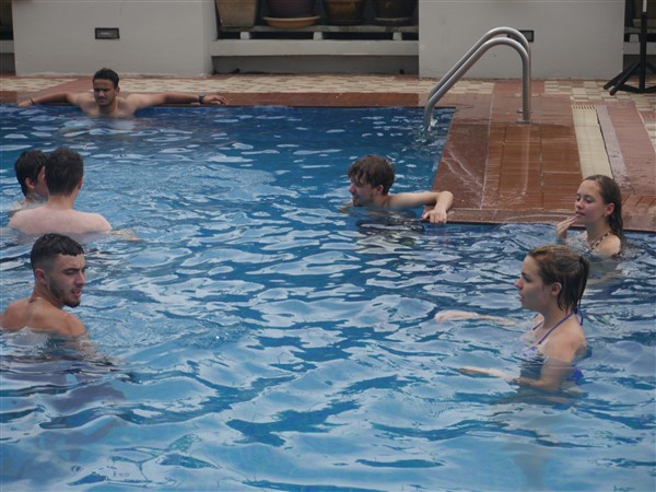 Nous avons digéré le repas dans le bus puis sur le bateau pour se rendre sur l’ile Ban Kra Cho où nous avons fais un tour de vélo. 1h30 plus tard, il fallait choisir entre aller à la piscine ou continuer le vélo, la question a été vite répondue. Le soir nous avons assisté au gala de Muay Thai avec de jolis combats.