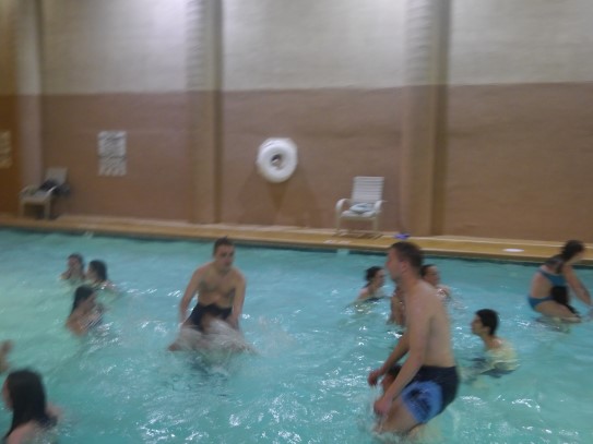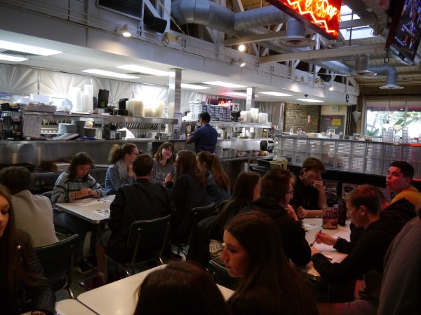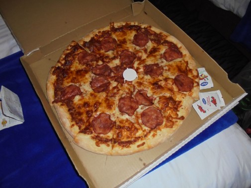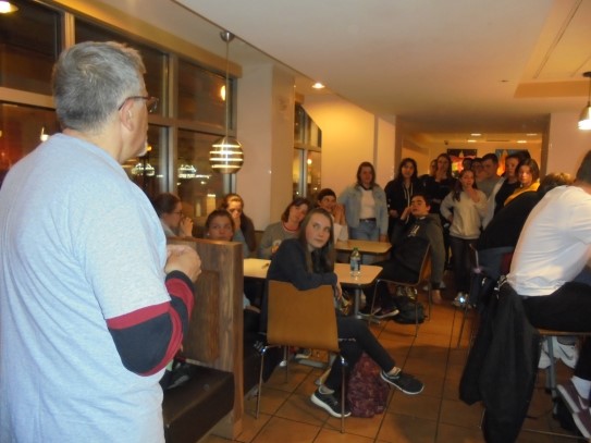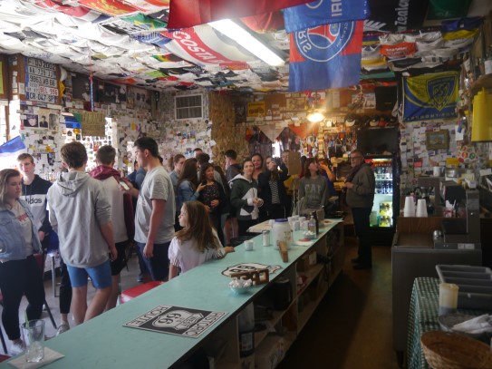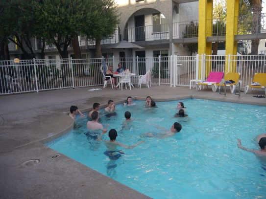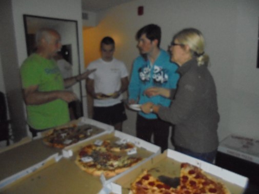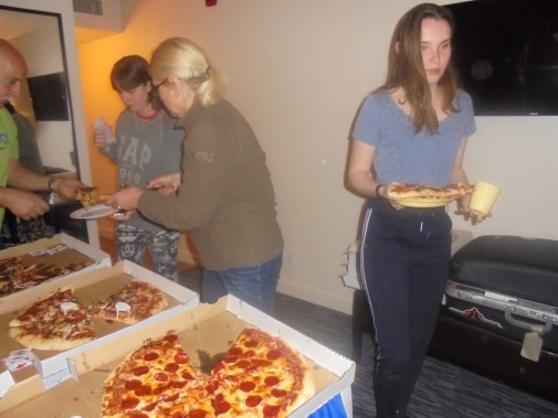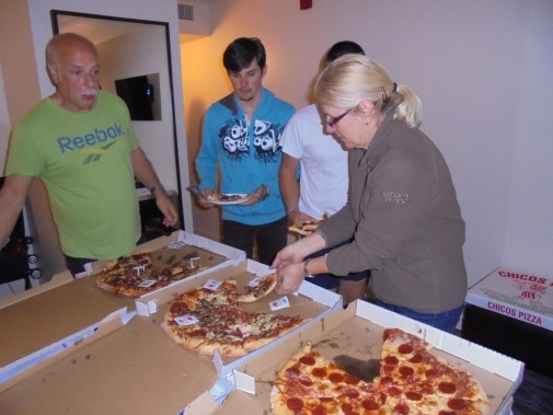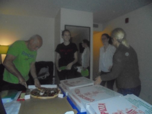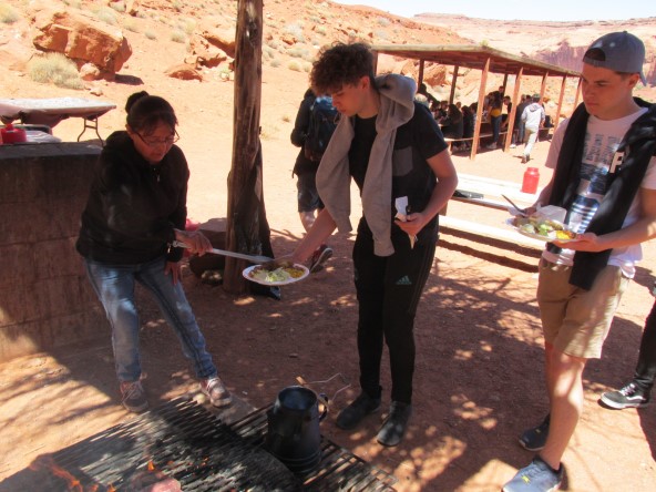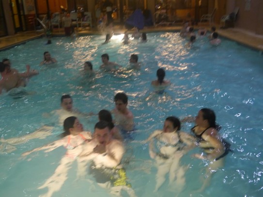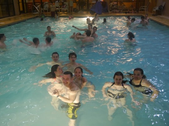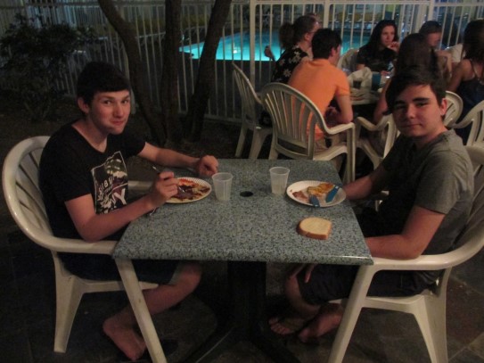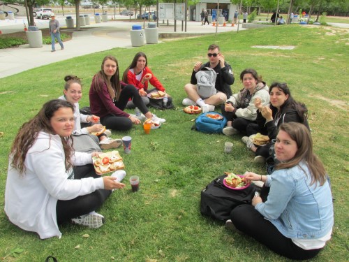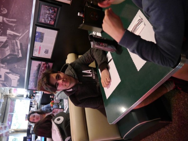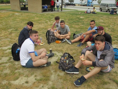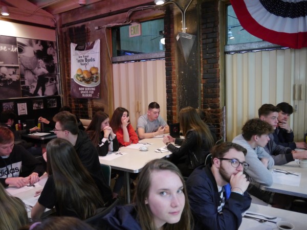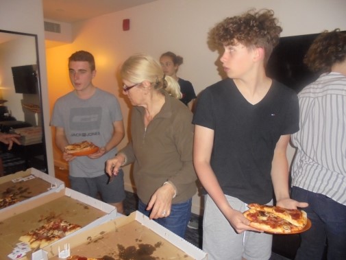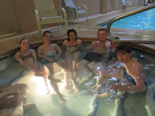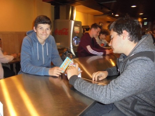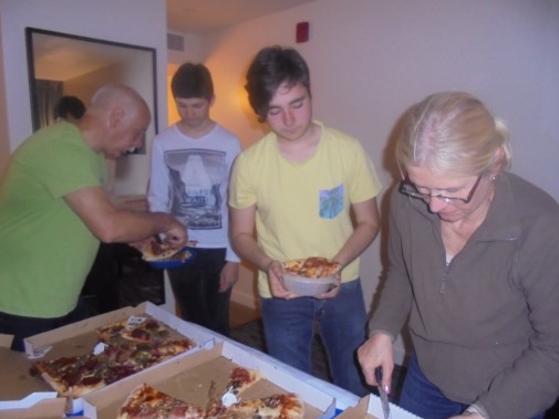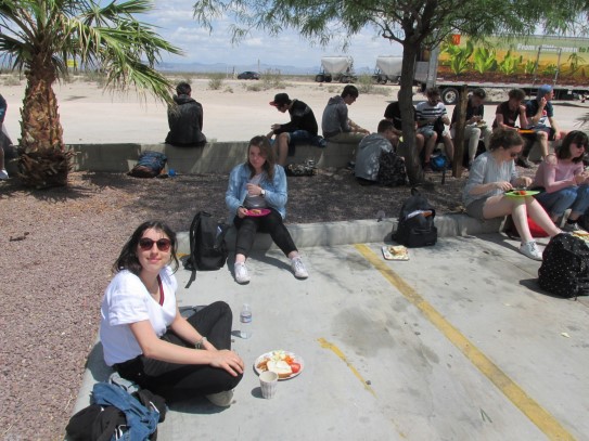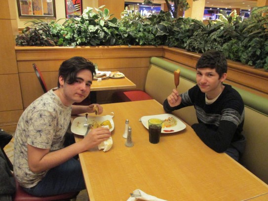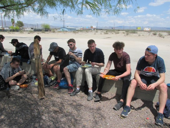 Ce soir nous avons diné dans un fast-food mexicain où nous avons pu déguster une fricassée de poulet avec du riz et de la sauce, le tout renfermé dans une tortilla. Pour finir la soirée, nous avons festoyé dans un Mac-Do pour l’anniversaire de Justine et d’Alain. Tous les deux ont reçu T-Shirt estampillé « Chicago » pendant que nous savourions un dessert glacé accompagné d’un écrasé de biscuits.