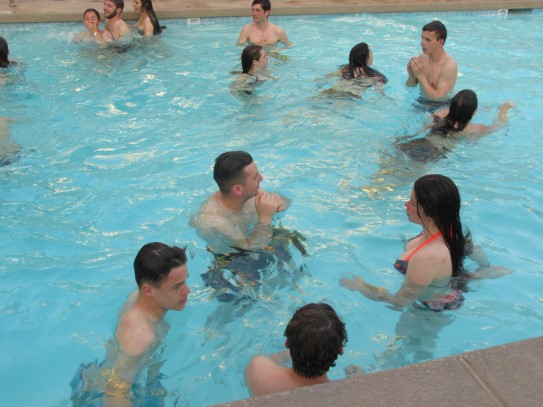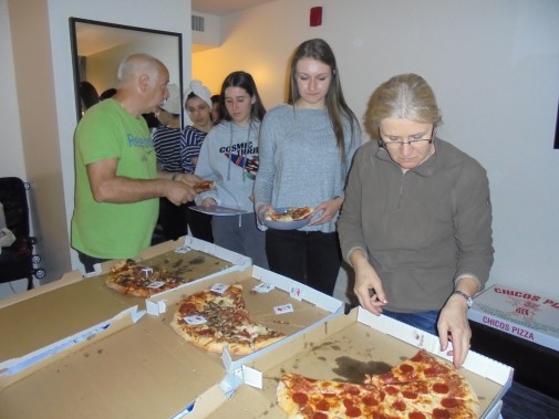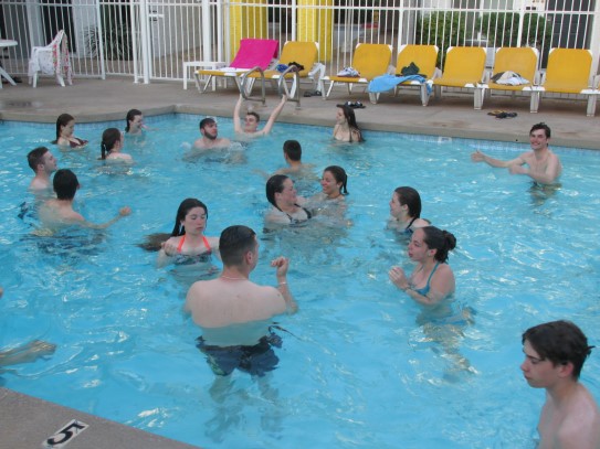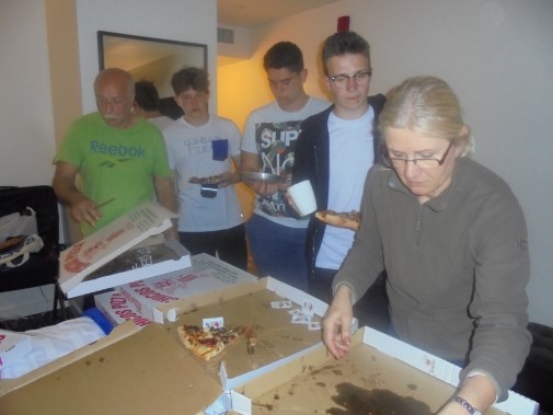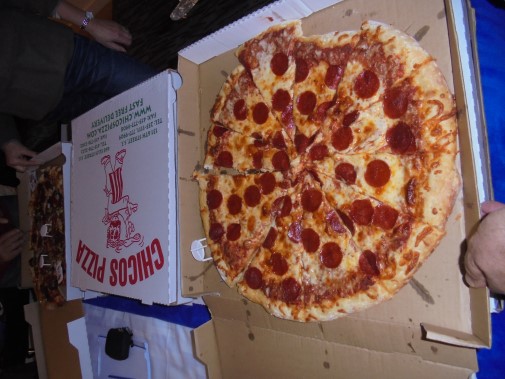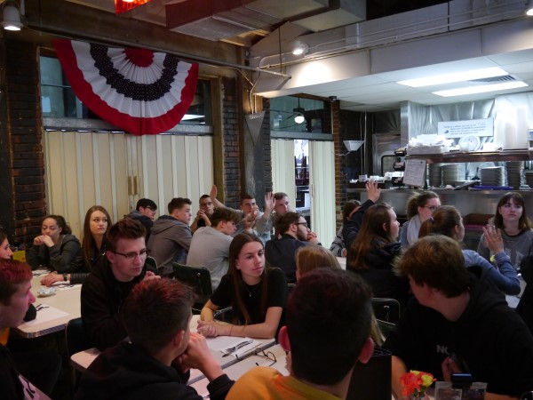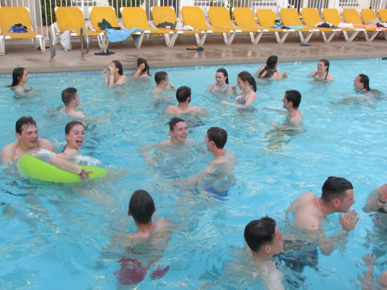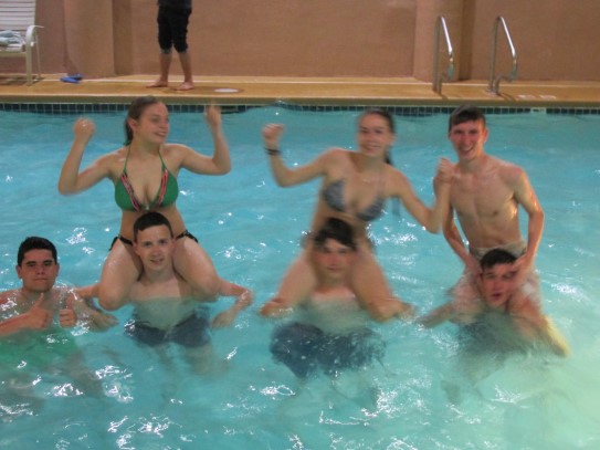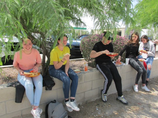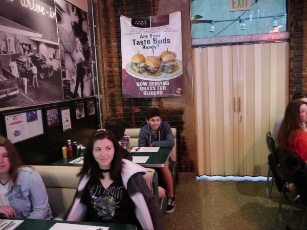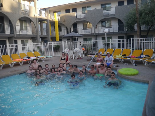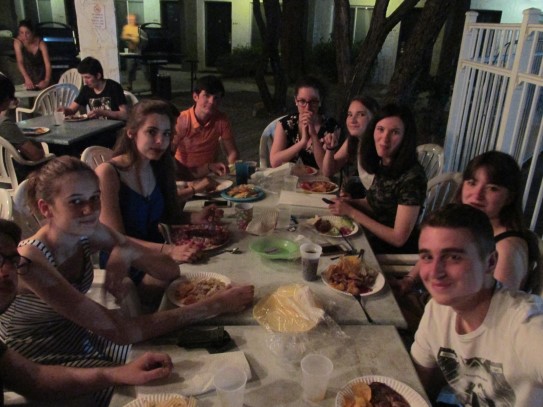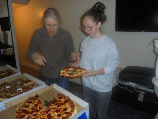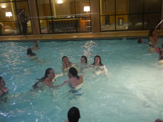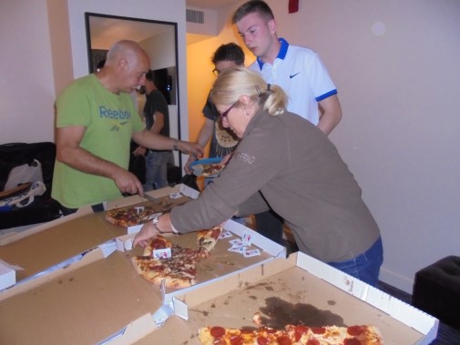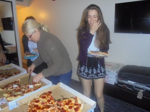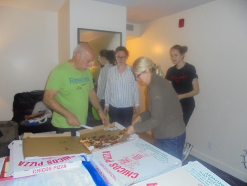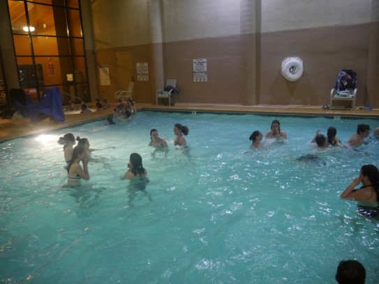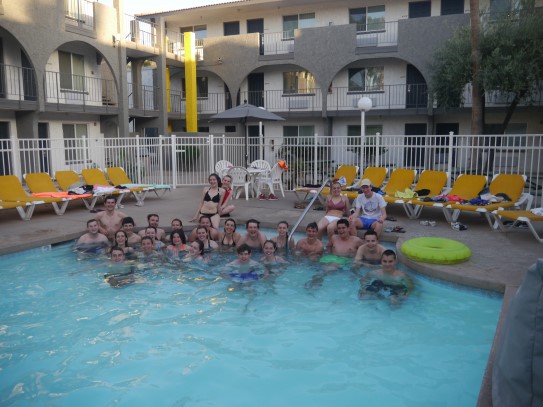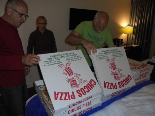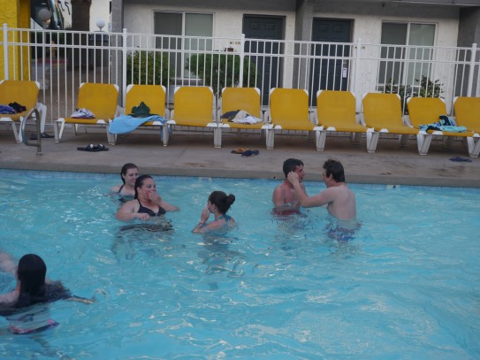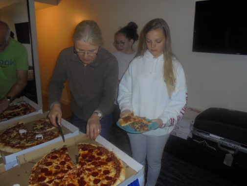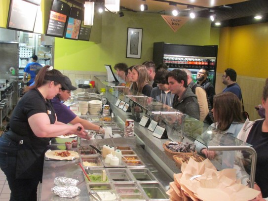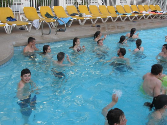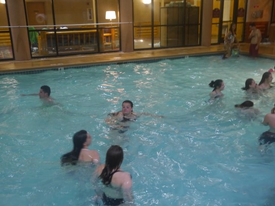 Ce soir nous avons diné dans un fast-food mexicain où nous avons pu déguster une fricassée de poulet avec du riz et de la sauce, le tout renfermé dans une tortilla. Pour finir la soirée, nous avons festoyé dans un Mac-Do pour l’anniversaire de Justine et d’Alain. Tous les deux ont reçu T-Shirt estampillé « Chicago » pendant que nous savourions un dessert glacé accompagné d’un écrasé de biscuits.