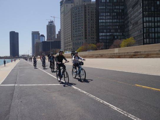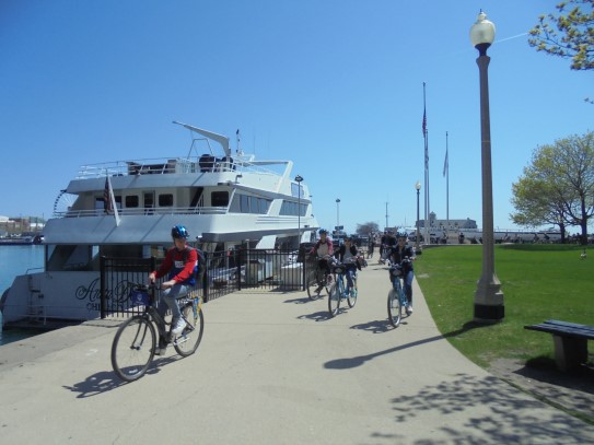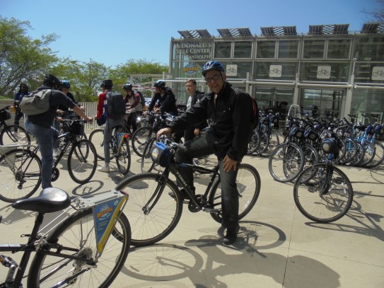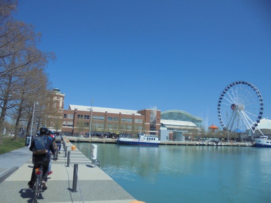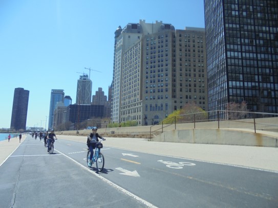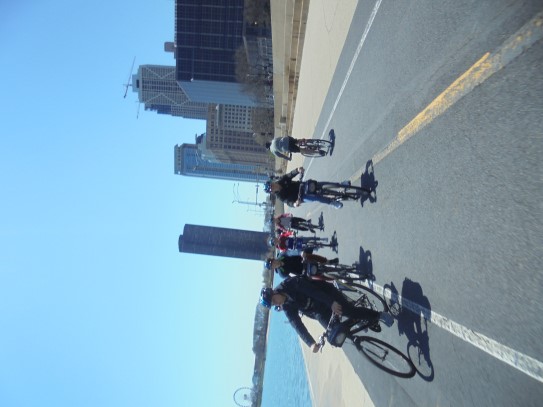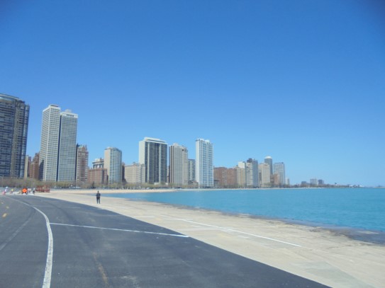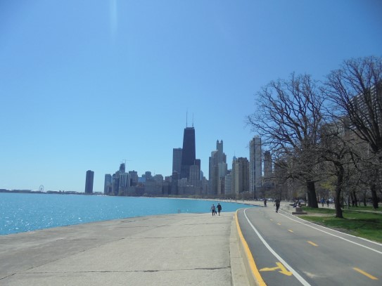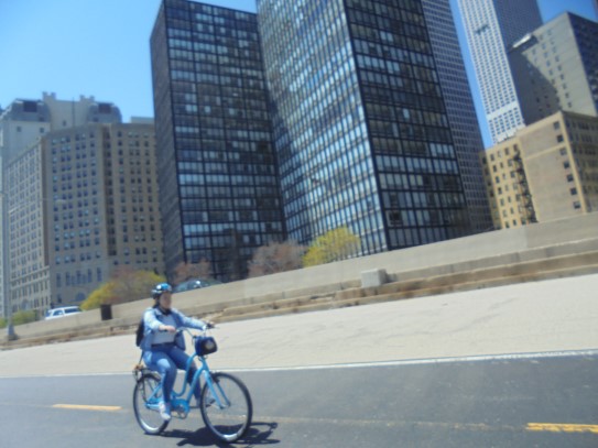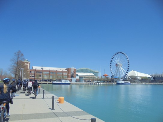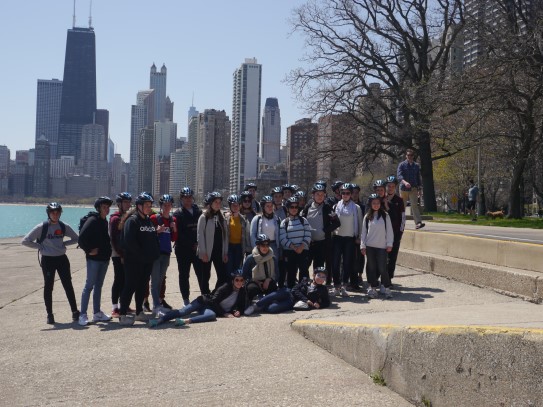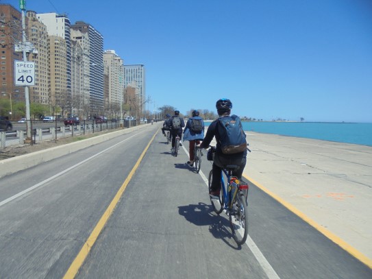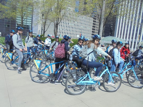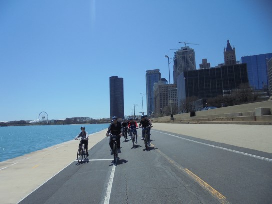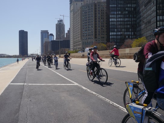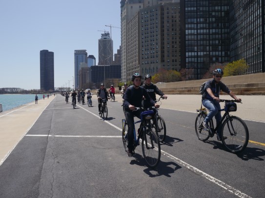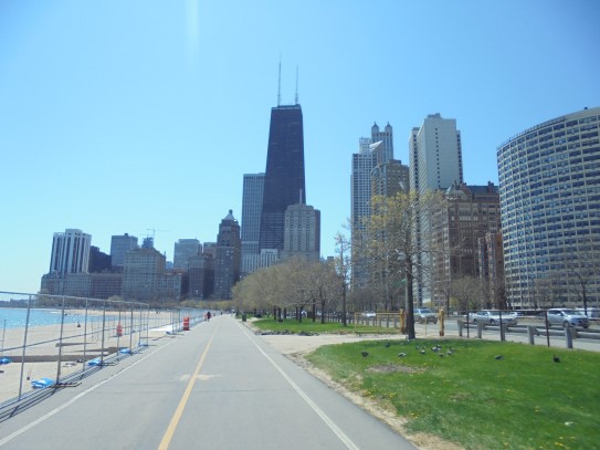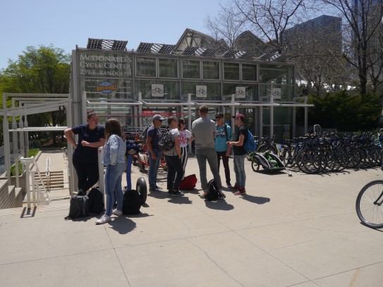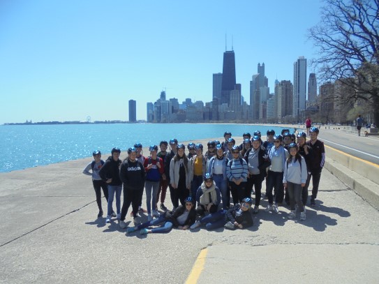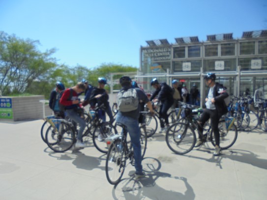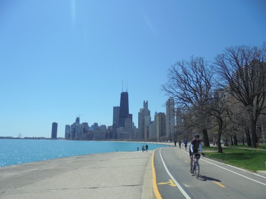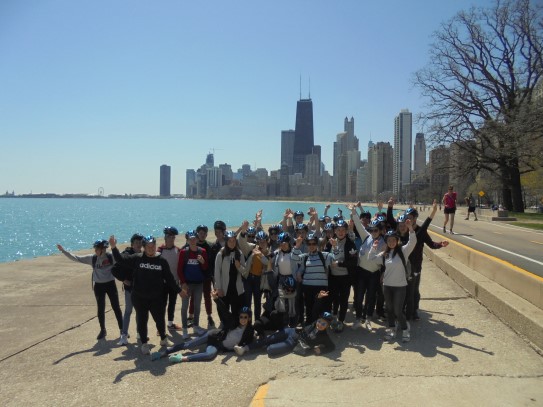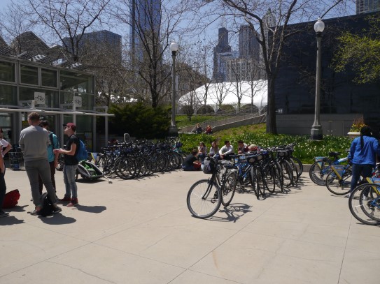 Aujourd’hui, nous avons fait une ballade à bicyclette autour du lac Michigan où nous pouvions admirer comme un front de mer. Certains ont monté leur « bécane » en Y.