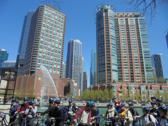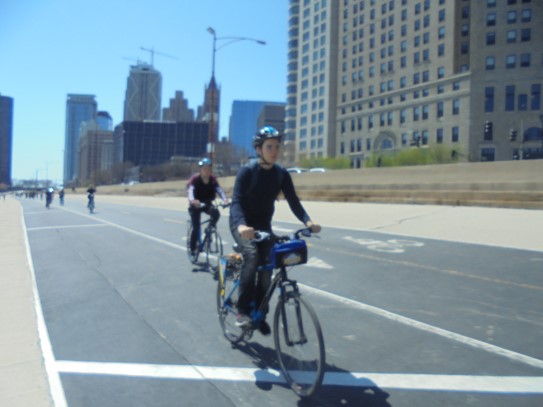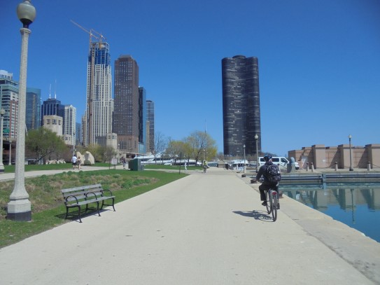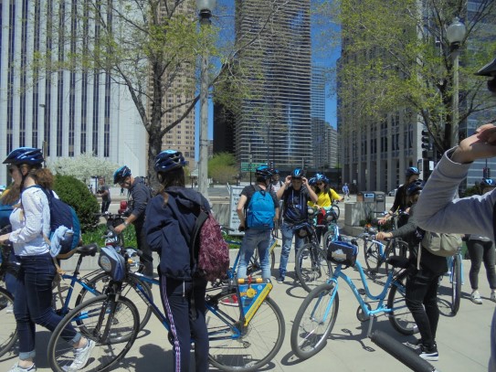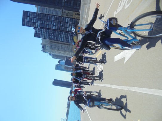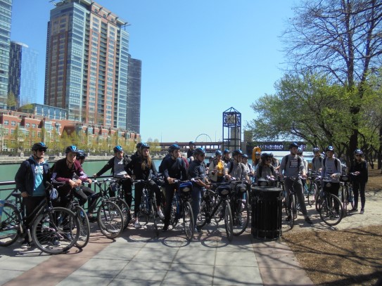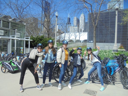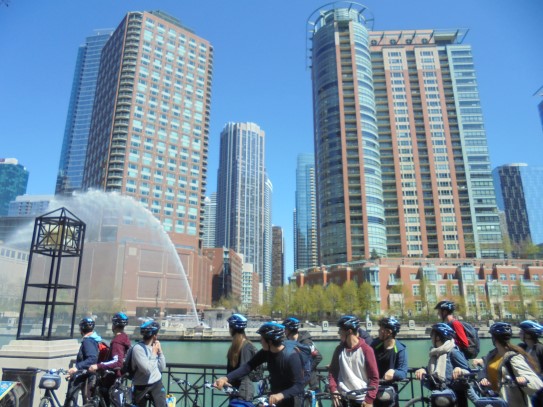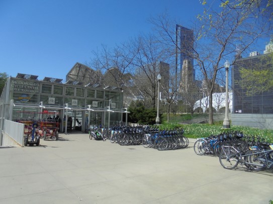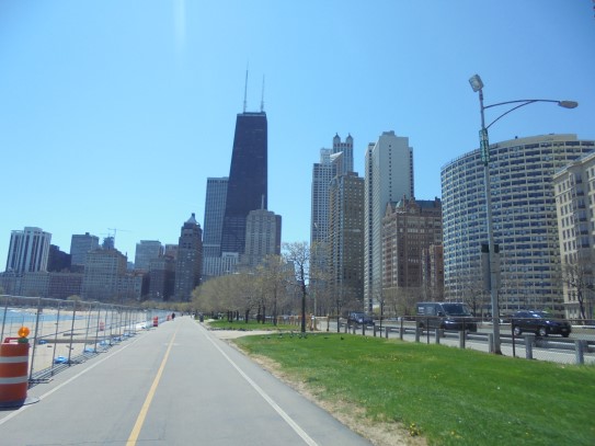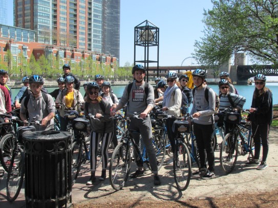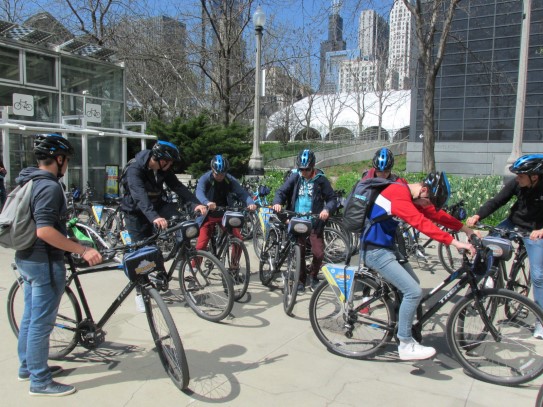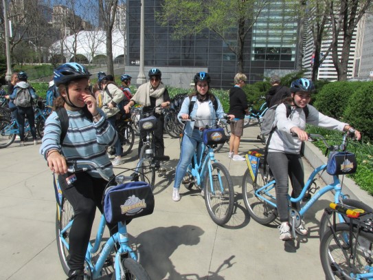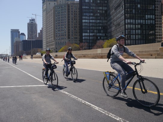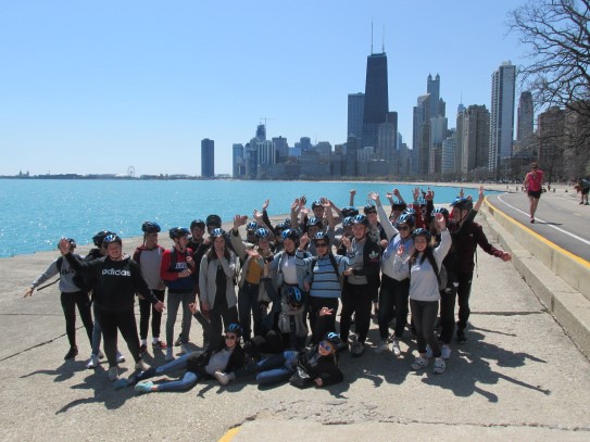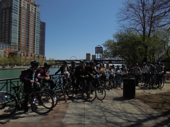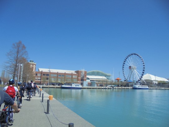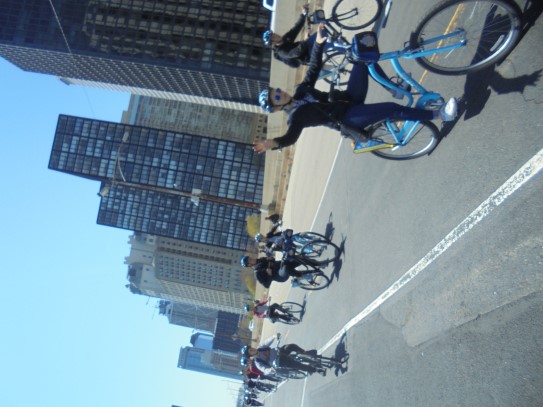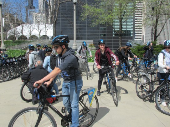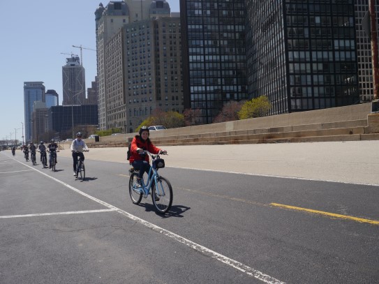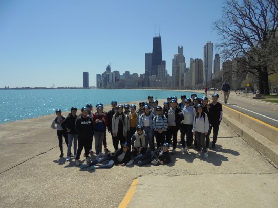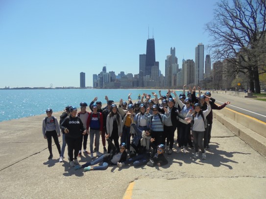Aujourd’hui, nous avons fait une ballade à bicyclette autour du lac Michigan où nous pouvions admirer comme un front de mer. Certains ont monté leur « bécane » en Y.