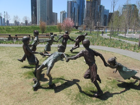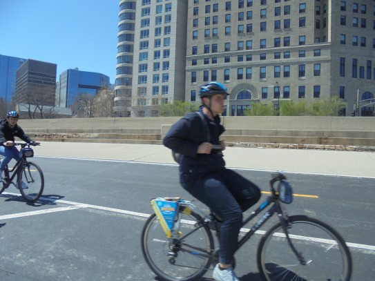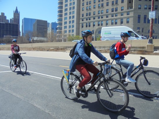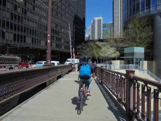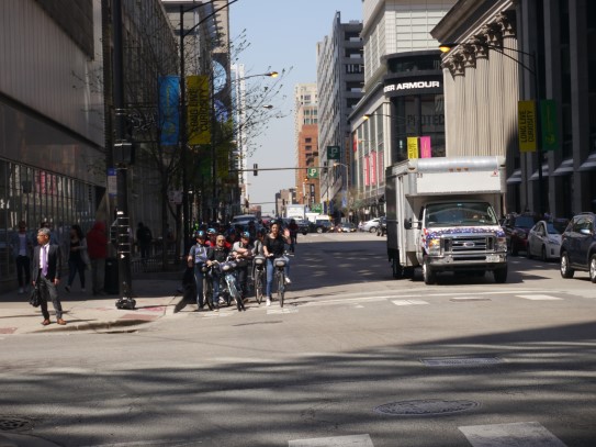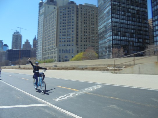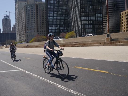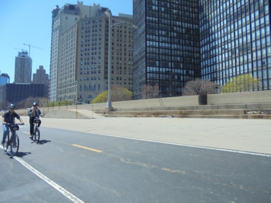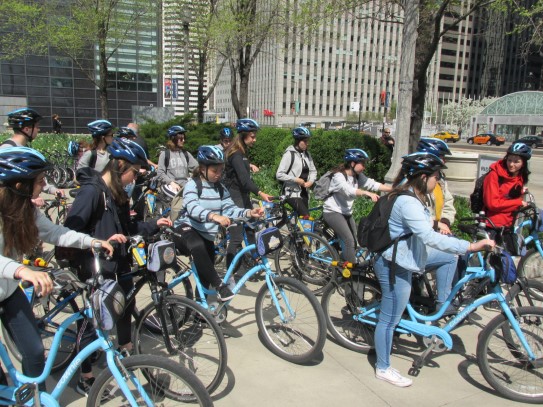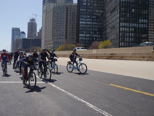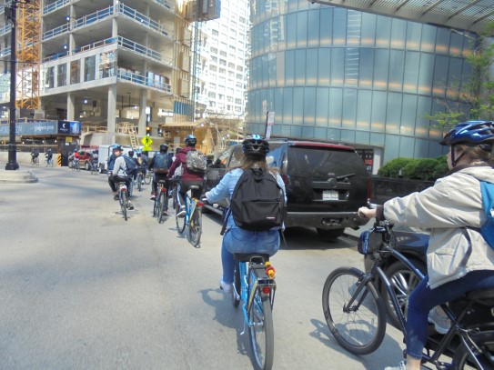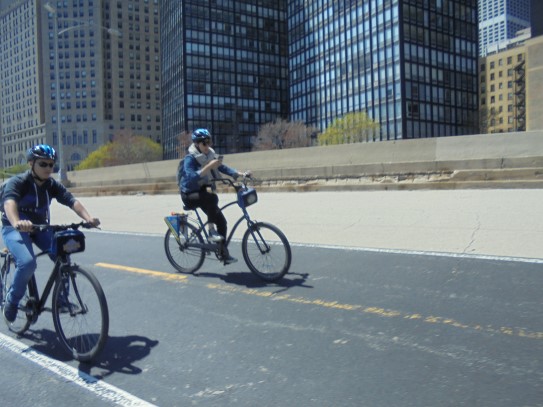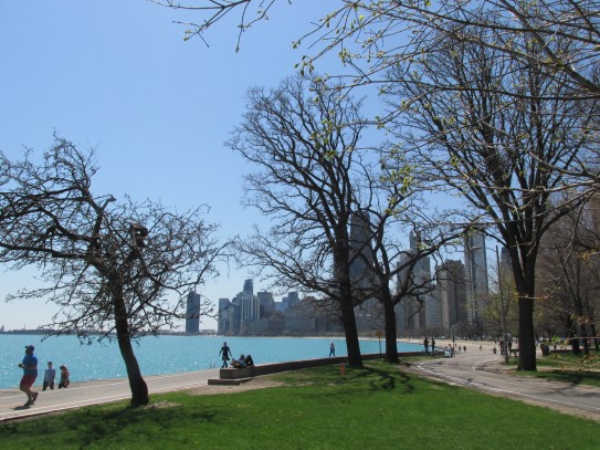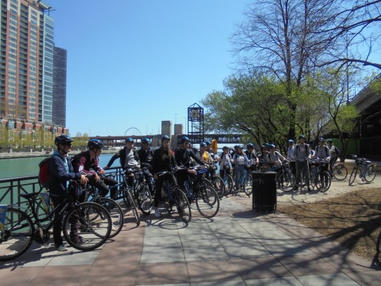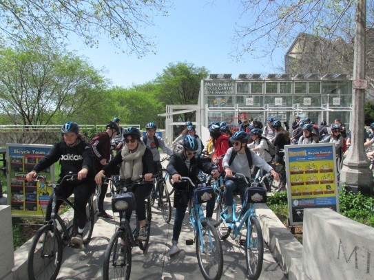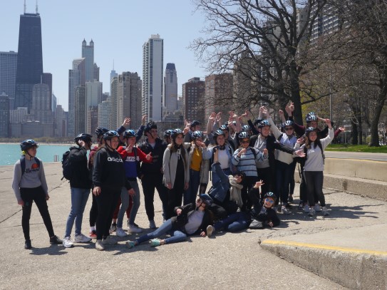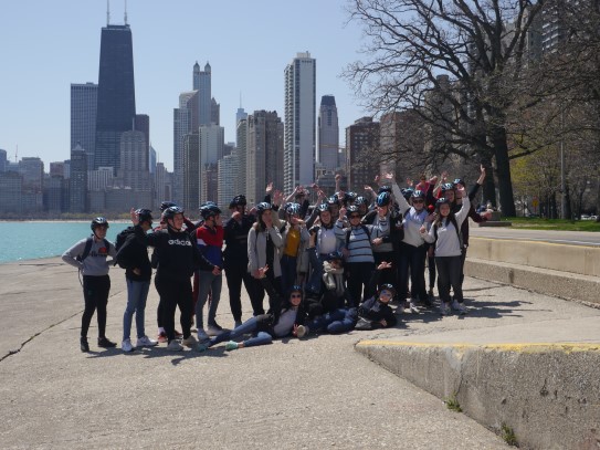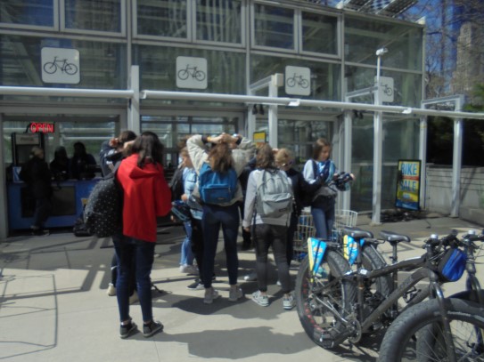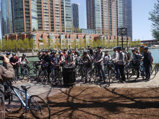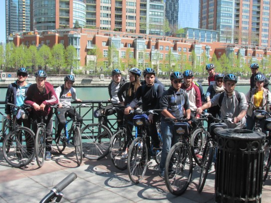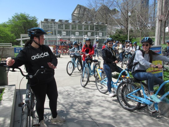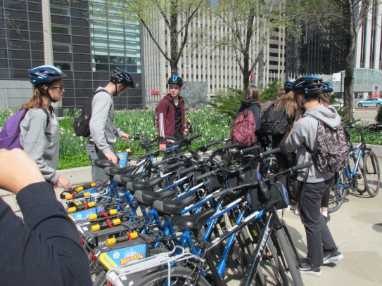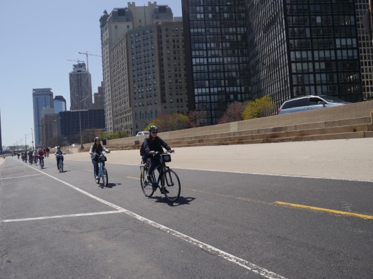 Aujourd’hui, nous avons fait une ballade à bicyclette autour du lac Michigan où nous pouvions admirer comme un front de mer. Certains ont monté leur « bécane » en Y.