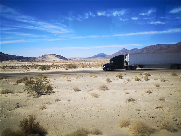 Arrêt à Barstow au TA Truck pour admirer les énormes camions américains, arrêt à Bagdad Café