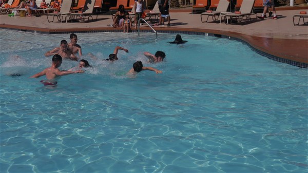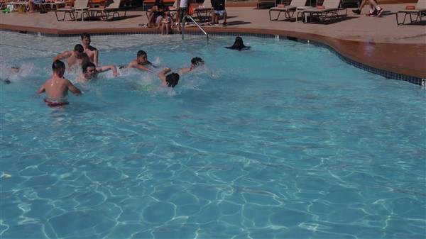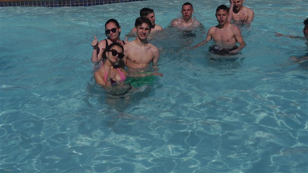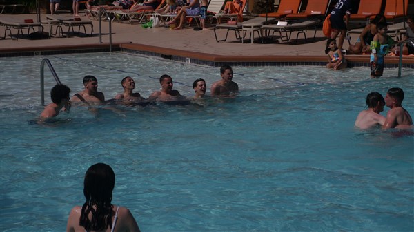 Matinée de détente. Piscine pour certains et les autres, repos.