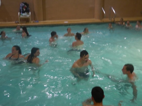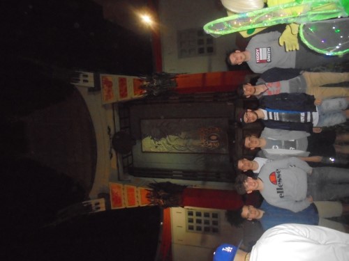 Ce soir nous avons diné dans un fast-food mexicain où nous avons pu déguster une fricassée de poulet avec du riz et de la sauce, le tout renfermé dans une tortilla. Pour finir la soirée, nous avons festoyé dans un Mac-Do pour l’anniversaire de Justine et d’Alain. Tous les deux ont reçu T-Shirt estampillé « Chicago » pendant que nous savourions un dessert glacé accompagné d’un écrasé de biscuits.