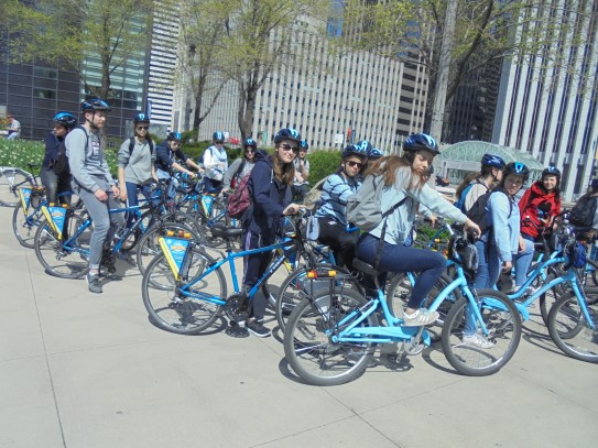 Aujourd’hui, nous avons fait une ballade à bicyclette autour du lac Michigan où nous pouvions admirer comme un front de mer. Certains ont monté leur « bécane » en Y.